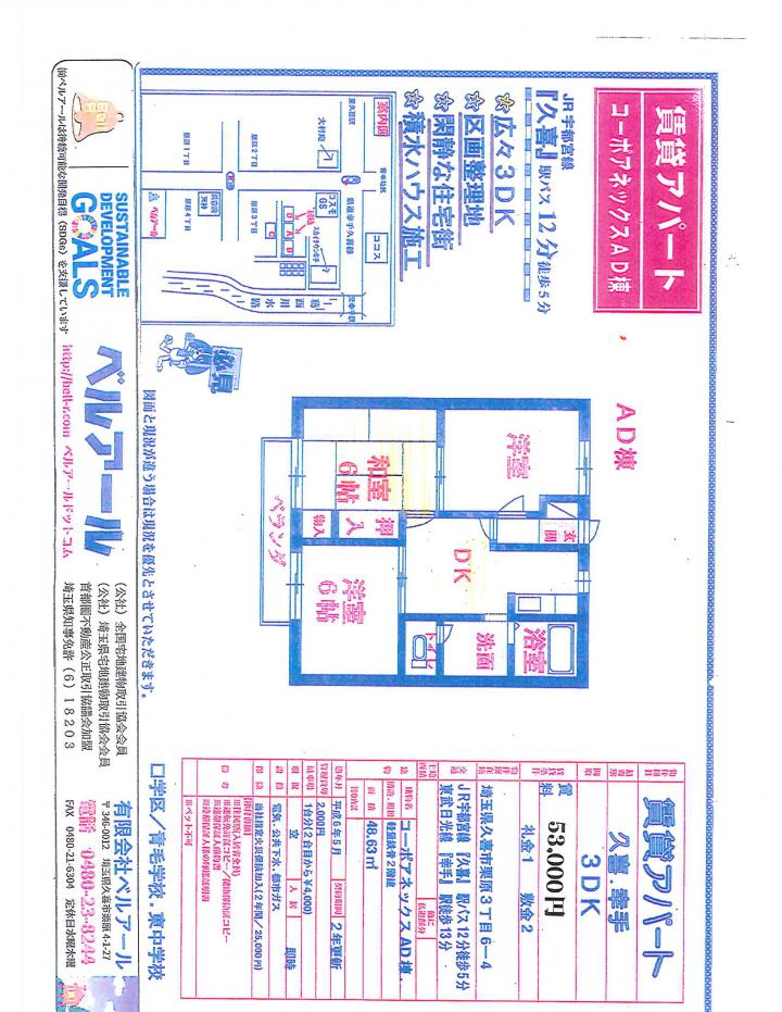 東武日光線幸手駅 徒歩 13分 | 埼玉県久喜市栗原3丁目6-4 | 3 DK | 48.63㎡ | 1997年02月 | 53,000円 | 53000 106000 |