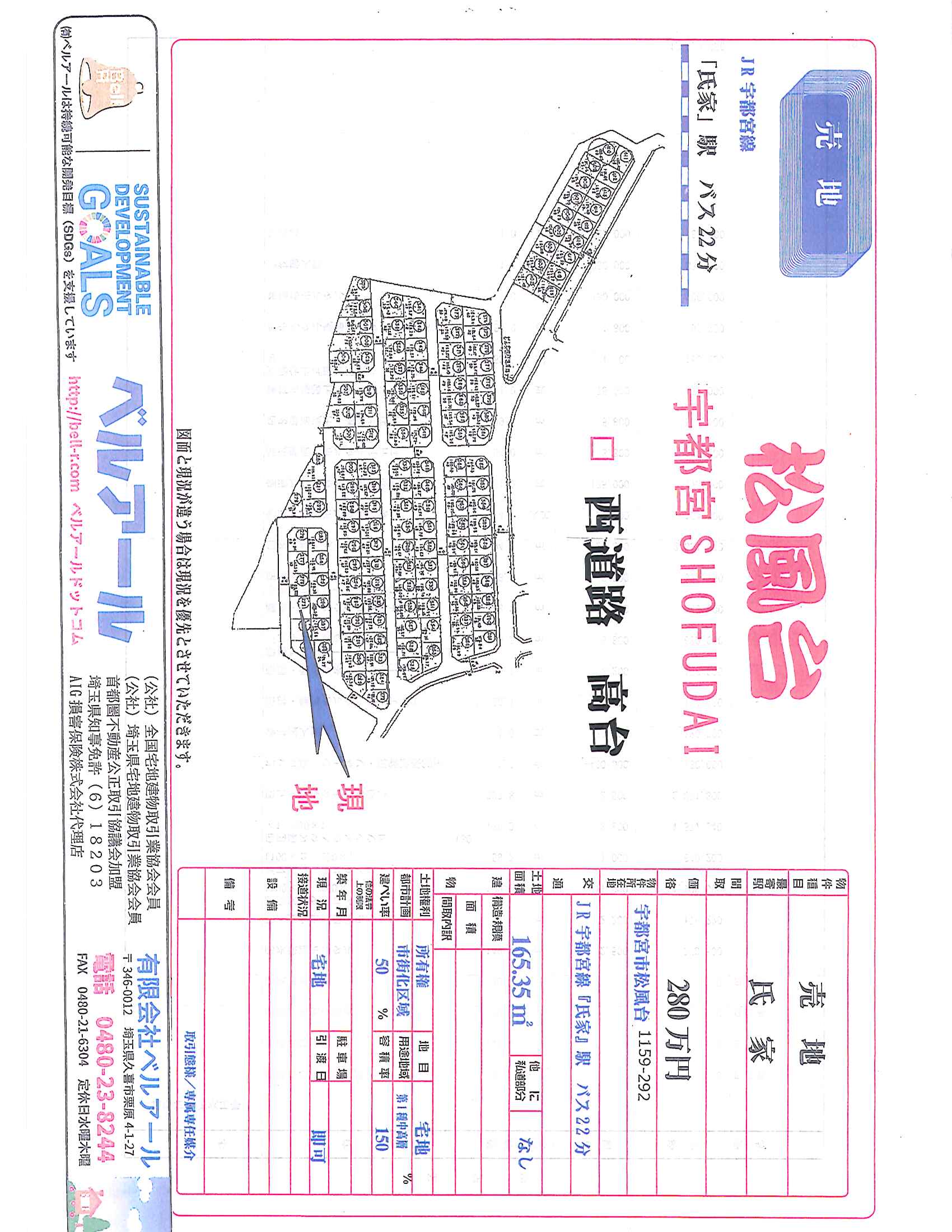 JR宇都宮線氏家 バス 22分 | 宇都宮市松風台1159-292 | 土地/165.35㎡ | 280万円(税込) |
