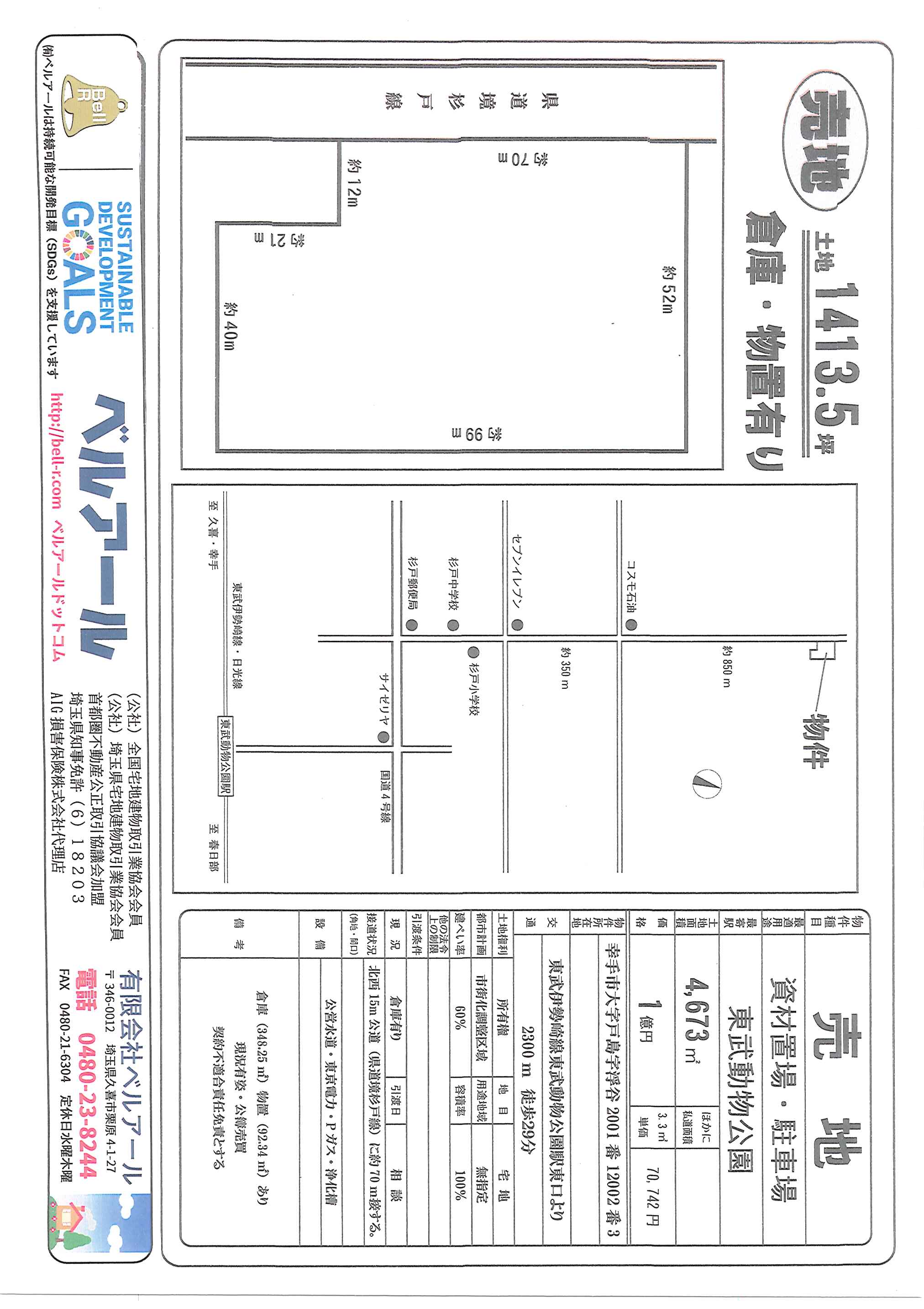 | 備考 | 倉庫345.25㎡・物置92.34㎡あり 現況有姿・公簿売買 契約不適合責任免責とする |