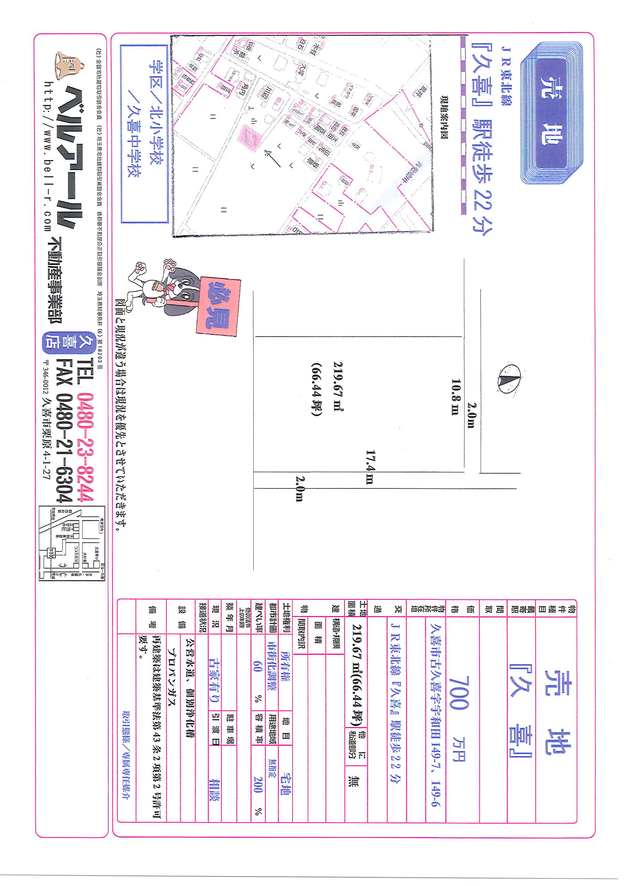 | 所在地 | 久喜市古久喜」宇和田149-7、149-6 |